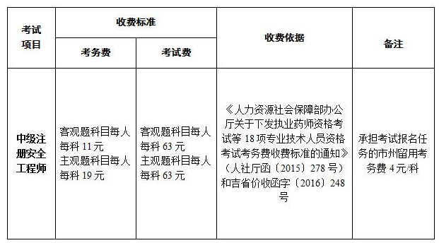 繳費標準:根據(jù)人力資源和社會保障部人事考試中心《關(guān)于2019年度中級注冊安全工程師職業(yè)資格考試考務(wù)工作的通知》(人考中心函〔2019〕49號)和《山東省人力資源和社會保障廳關(guān)于專業(yè)技術(shù)人員資格考試收費標準有關(guān)問題的通知》(魯人社字〔2018〕231號)文件規(guī)定,2019年度中級注冊安全工程師職業(yè)資格考試費客觀題科目每人每科61元,主觀題科目每人每科69元。