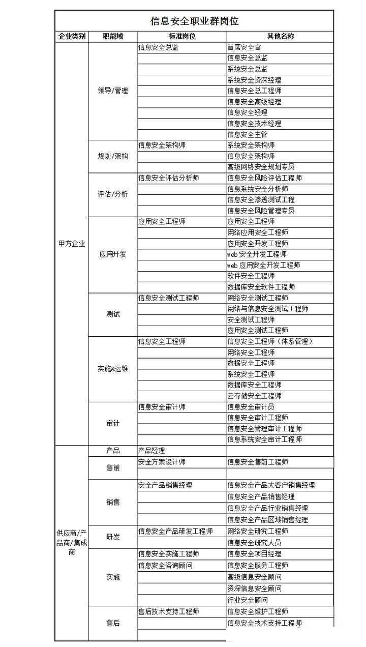 專業信息安全工程師職業群崗位表