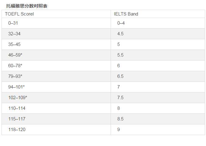 雅思分數范圍為0-9分,總分取平均值;托福分數范圍為0-120分,總分需單項分相加