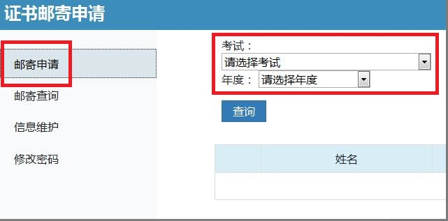 第三步:證書狀態為可申請時,點擊“郵寄申請”,填寫收件信息。