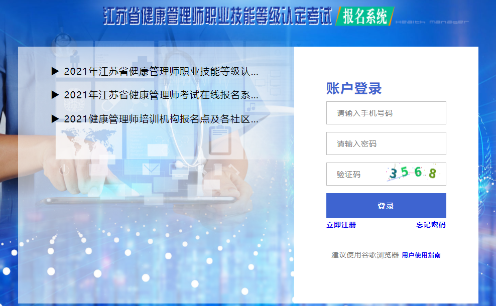 目前是打印準考證的時間,點擊下方圖片進入2021年江蘇健康管理師報名入口: