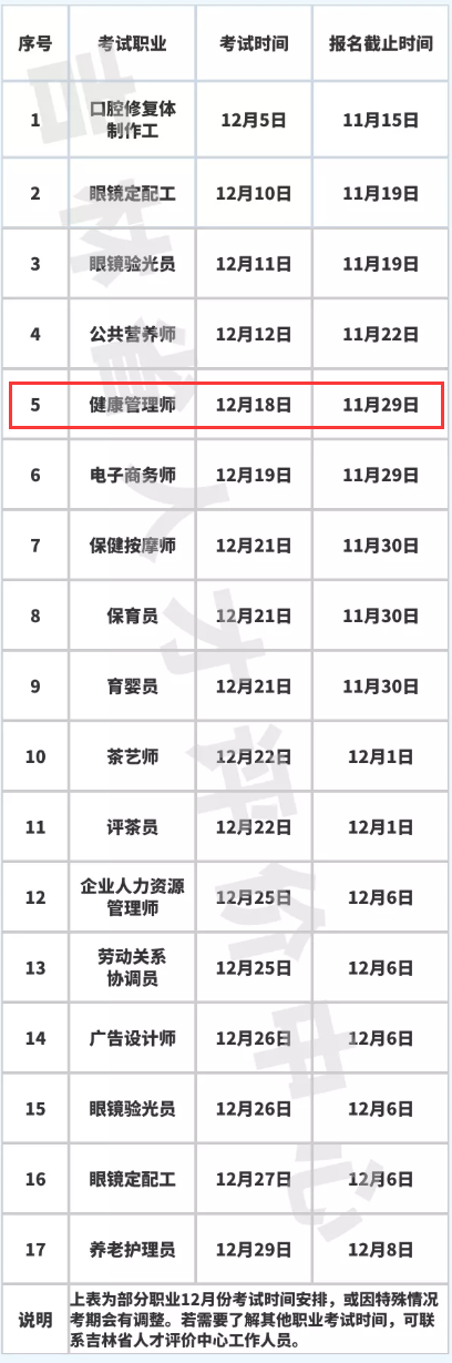 報名吉林2021年12月健康管理師考試時間安排出爐!
