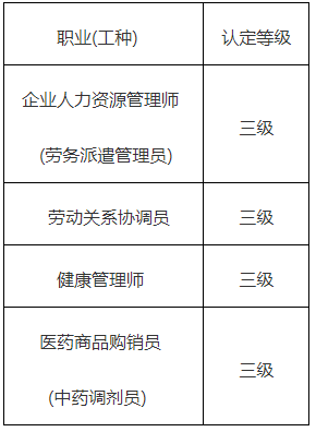 企業人力資源資源管理師(勞務派遣管理員)、勞動關系協調員、健康管理師、醫藥商品購銷員(中藥調劑員)等多個職業(工種)。