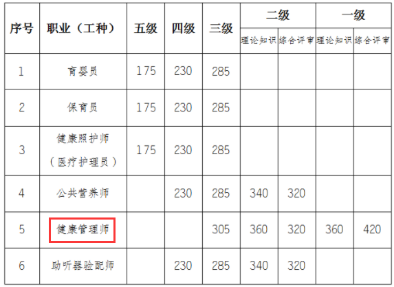 根據(jù)重慶市衛(wèi)健委國家職業(yè)技能鑒定所發(fā)布的相關內(nèi)容,我們可以得知重慶健康管理師報名費用為305元,如下圖所示: