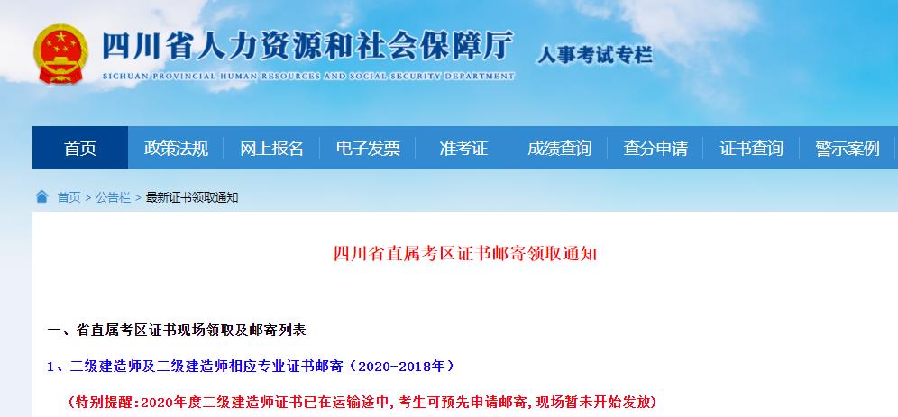 2020年四川二級建造師考試合格證書開始領(lǐng)取了嗎?目前的進度如何呢,根據(jù)四川人力資源和社會保障廳官網(wǎng)的信息可知: