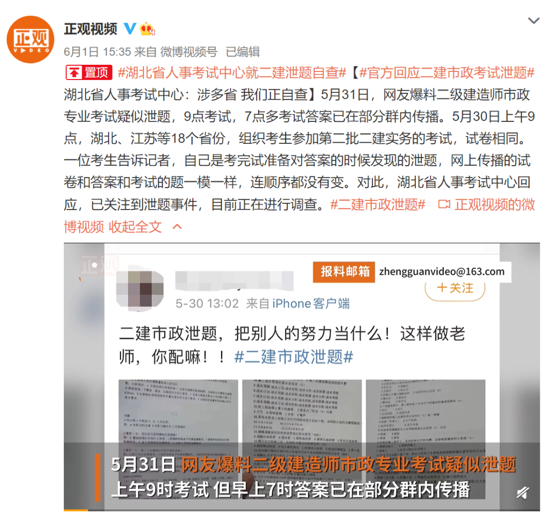 泄題終于有了后續(xù)消息,湖北人事考試中心回應:已經(jīng)開始自查!