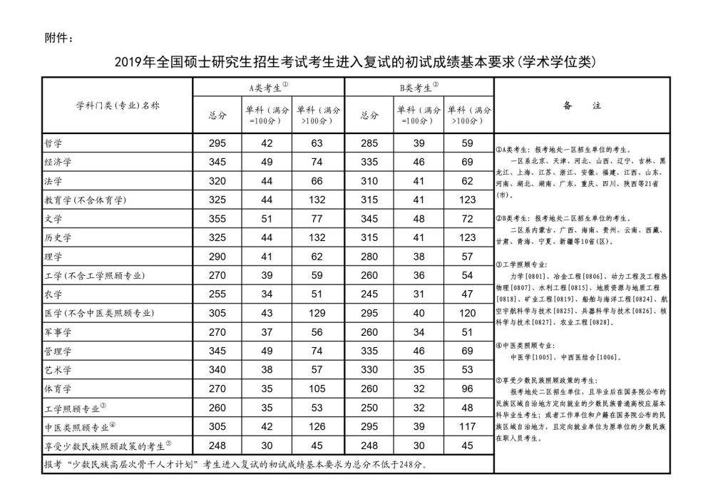 2019年全國(guó)碩士研究生招生考試考生進(jìn)入復(fù)試的初試成績(jī)基本要求(學(xué)術(shù)學(xué)位類(lèi))