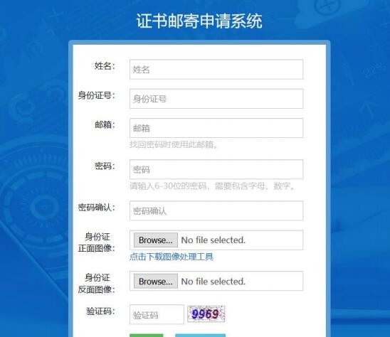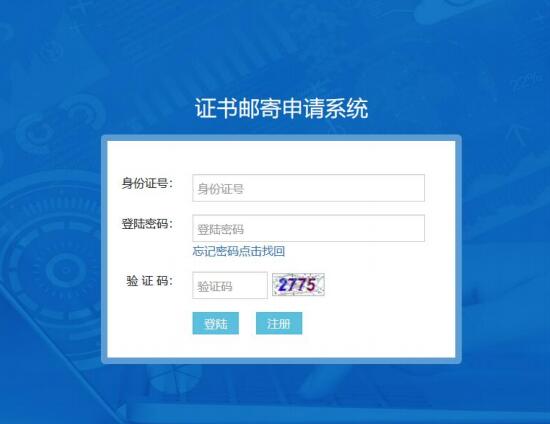 輸入注冊時的身份證號、登錄密碼,以及驗證碼,點擊“登錄”進行登錄信息驗證。如果驗證失敗,系統將有相應提示。如果驗證通過,則跳轉到郵寄申請操作界面。具體如下圖: