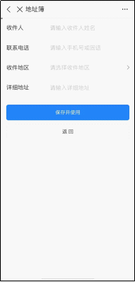 5.填寫收件人名址信息,地址簿填寫完成后點(diǎn)擊“保存并使用”;