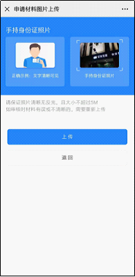 6.上傳手持身份證照片,點(diǎn)擊上傳,提示成功后返回即可;