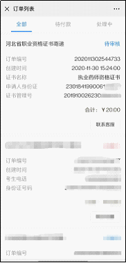 9.點(diǎn)擊“查看訂單”可查看訂單狀態(tài),待審核為等待考試中心審核材料