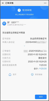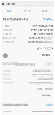 14.最后:如訂單狀態(tài)不顯示“取消審核”,則安心等待證書郵寄到家即可。