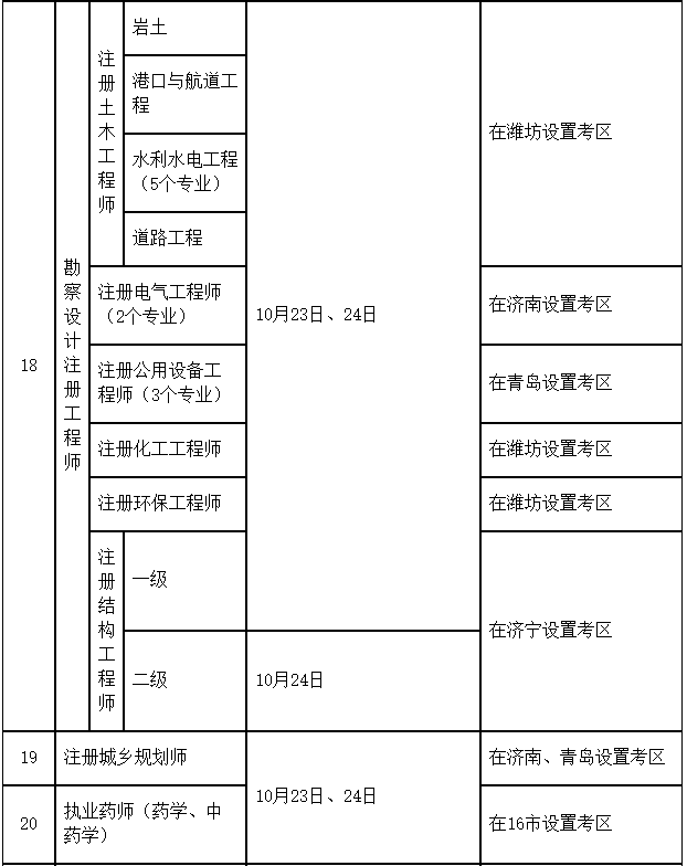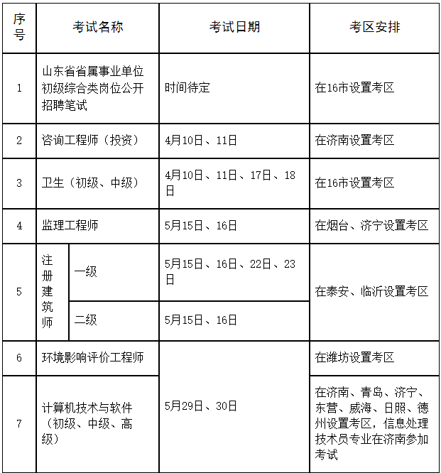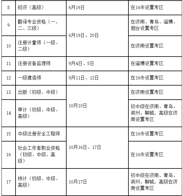 2021年度山東省人事考試計劃及考區安排表
