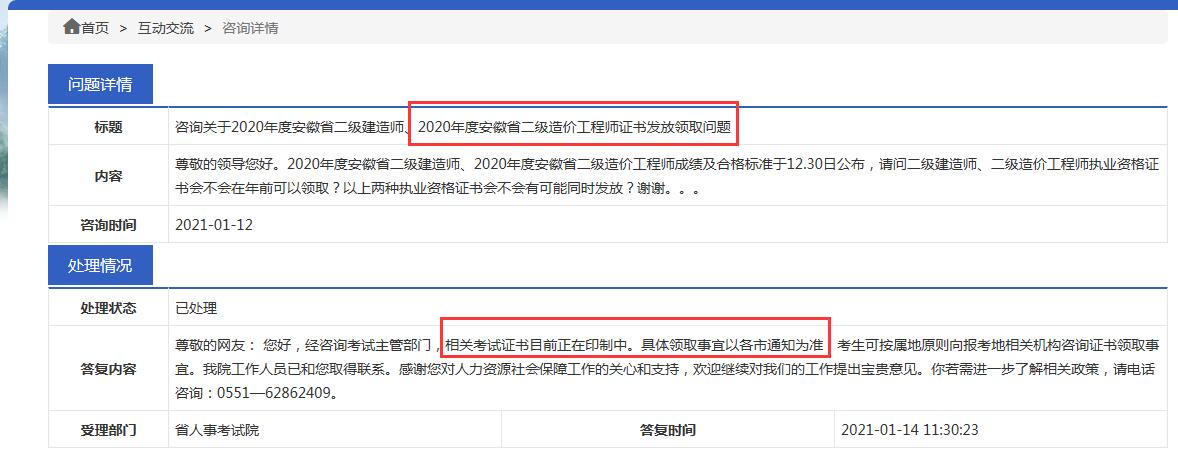問:尊敬的領導您好。2020年度安徽省二級建造師、2020年度安徽省二級造價工程師成績及合格標準于12.30日公布,請問二級建造師二級造價工程師執業資格證書會不會在年前可以領取?以上兩種執業資格證書會不會有可能同時發放?謝謝。。。