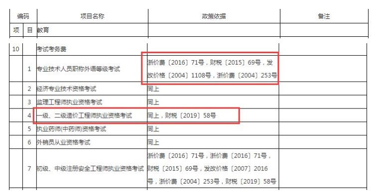 2021嘉興二級造價工程師考試費、鑒定費目錄清單