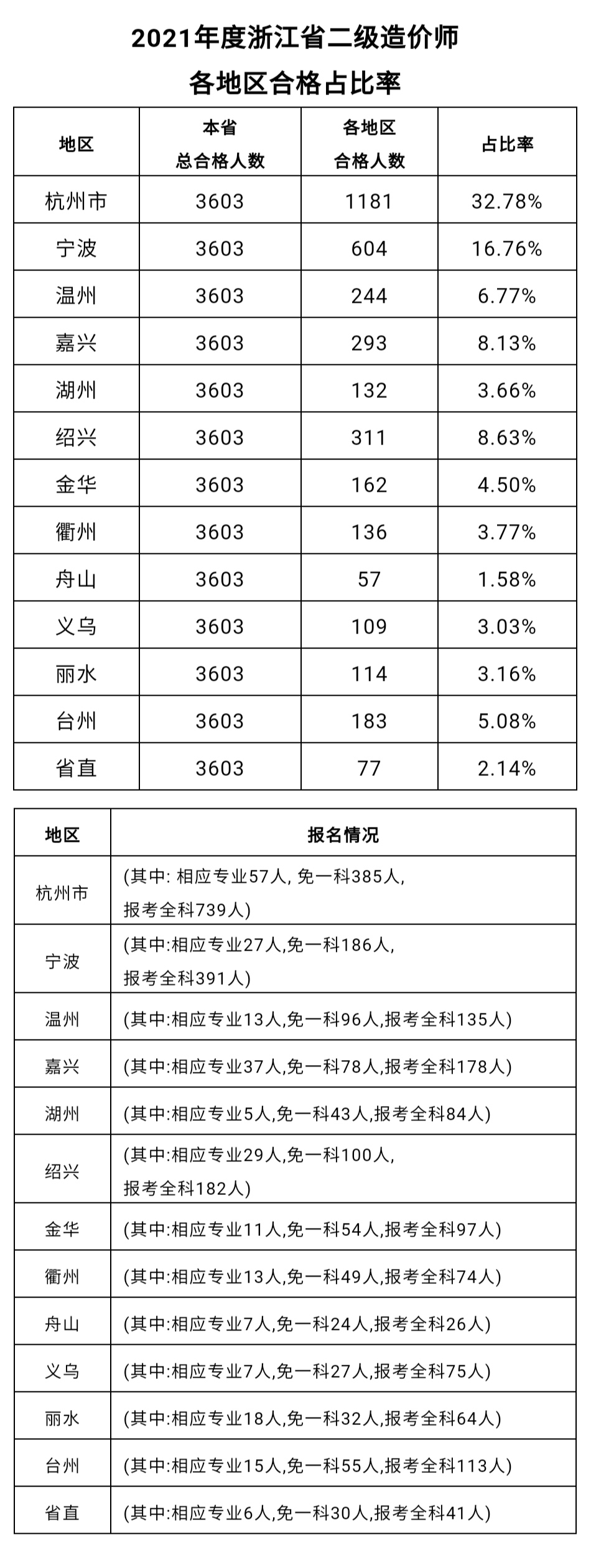 2021年度二級(jí)造價(jià)師考試浙江地區(qū)合格占比率